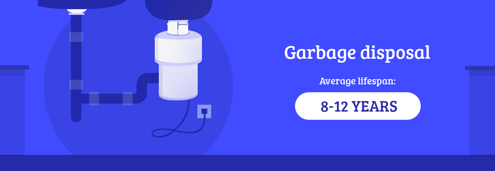 Due to its intense work of grinding food matter into particles small enough to flush down the drain pipes, garbage disposals have a relatively short lifespan. It might last as little as 8 years, but regular maintenance can last as much as 12 years.